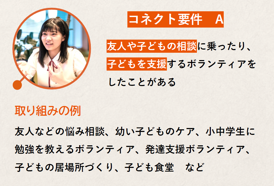 ※「教育探究」というタグのついたプログラムが「コネクト要件」対象です。なお、自身が「この要件に当てはまる」と理由を持って説明できれば、他のプログラムでの経験をもとに申告しても問題ありません。